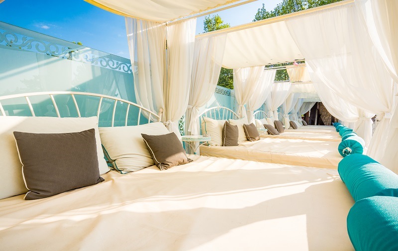 The hotel’s premises, including the pools and the SPA area are filled with mineral water. Deckchairs and hammocks line the outdoor pool, and tables and chairs are available. There is also a terrace, offering two baths with different mineral water and one bath with sea salt water. Free of charge fitness area with a protein bar is offered. Massages are available on site at a surcharge.