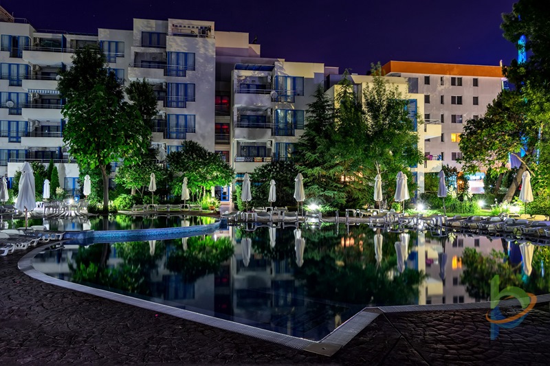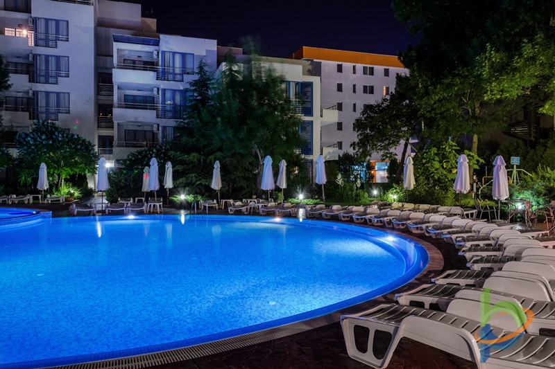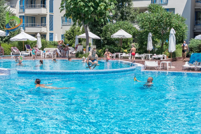 Апартхотел Екселсиор е разположен на броени метри от плажа, близо до главната пешеходна алея в центъра на Слънчев бряг, същевременно е част от тиха зона с градина, открит басейн със зона за деца и детска площадка.
