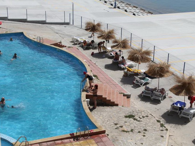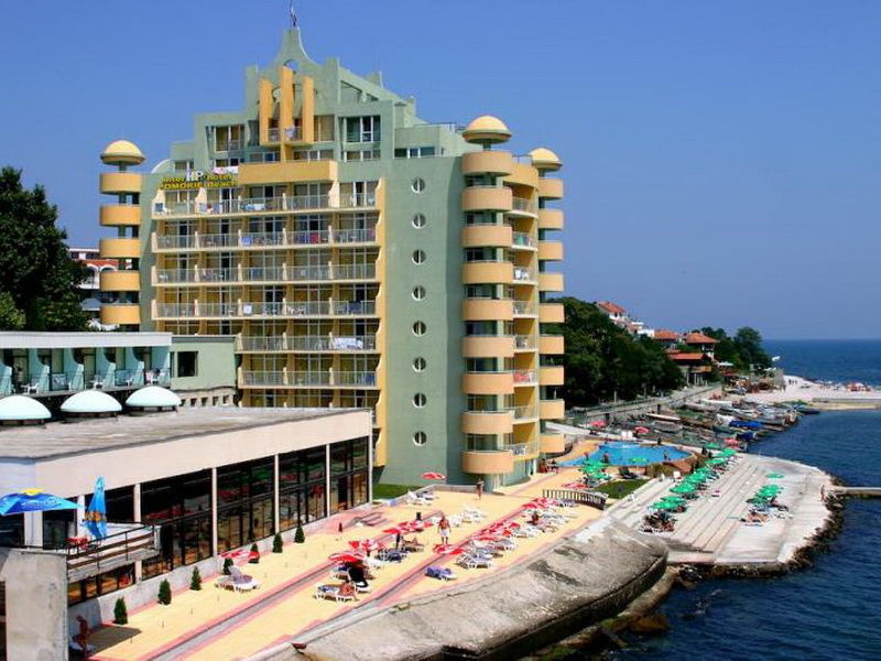 Живописно разположен над морето, на самият край на полуострова, 3-звездния хотелски комплекс Поморие отдалече привлича вниманието със силуета си, наподобяващ акустирал в морето кораб.