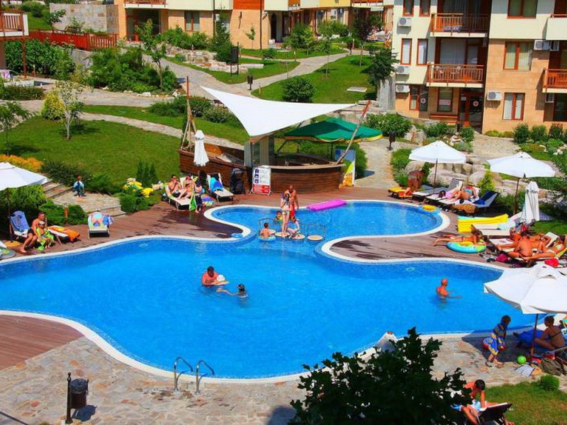 Разположен в близост до Слънчев бряг, комплексът има 7 открити басейна с детски зони и 4 мокри бара, както и сладкарница до басейна.