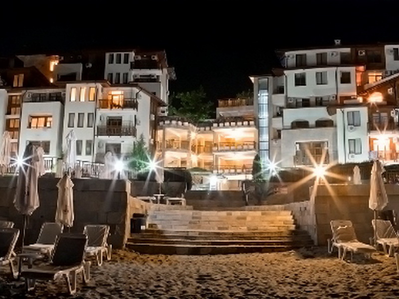 Комплекс Райска градина е разположен на самия плаж в Свети Влас и има южно изложение. Той предлага модерни помещения за настаняване, повечето с морски изглед, както и няколко ресторанта и бара.
