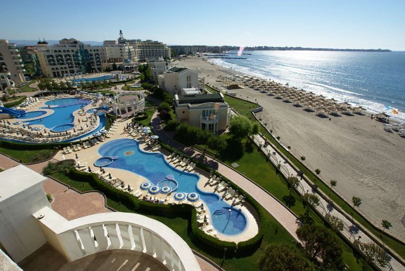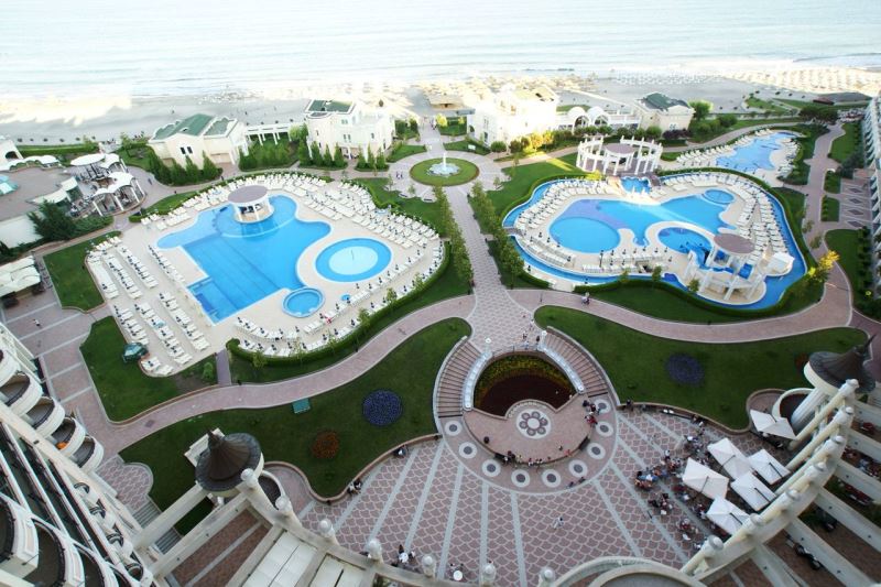 Комплексът се състои от 5 сгради, разположени на голяма площ, като включва 4 открити басейна, цветни градини и приятни кътчета за сядане, всички разположени точно на плажа. Повечето апартаменти разкриват великолепна гледка към Черно море, а други имат отлична панорама към Балкана.
