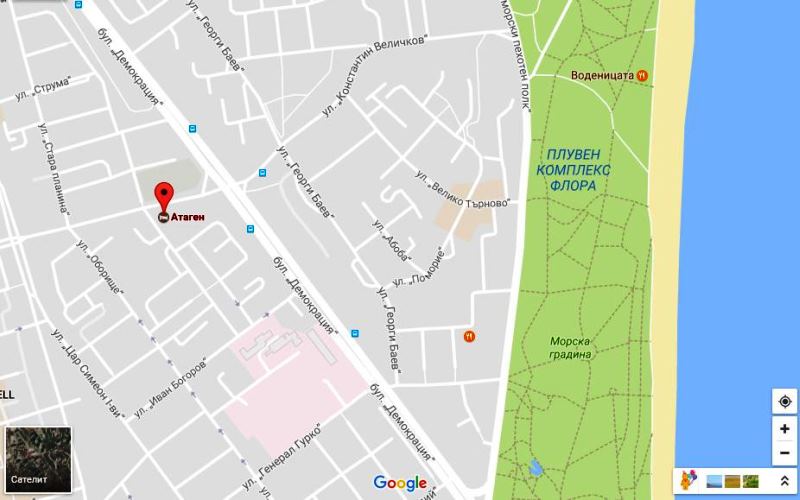 Хотел Атаген е разположен на 10 минути пеша от центъра на Бургас. Хотел Атаген се намира на 500 м от плажа на Бургас, на улица Сан Стефано № 123.