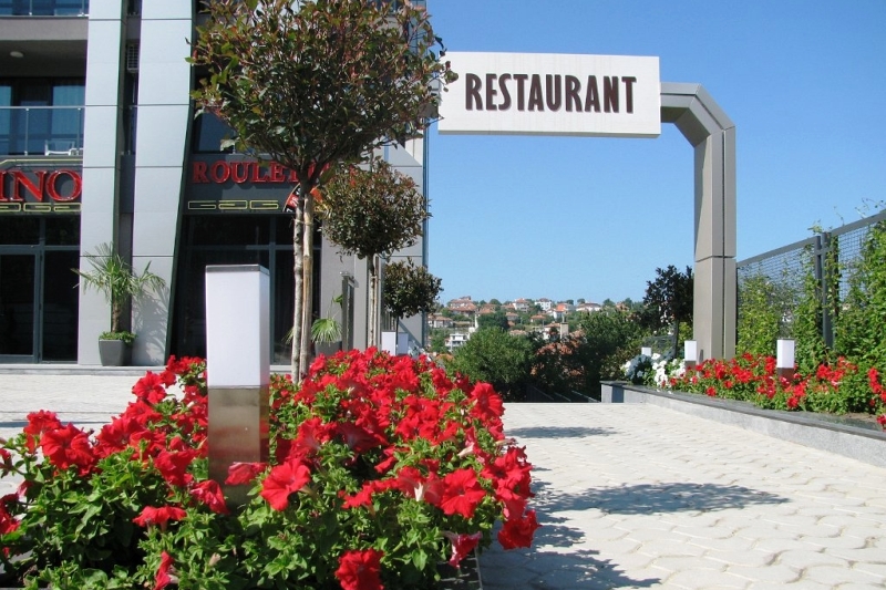 Гостите могат да опитат разнообразното меню на елегантния ресторант, който предлага и подбрани български специалитети. В лятната градина край басейна можете да се насладите на освежителни питиета и леки ястия.