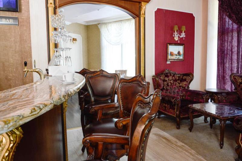 Барът се отличава с класически декор и включва обзавеждане от дърво и мека мебел. Гостите могат да релаксират в сауната или на терасата.