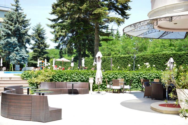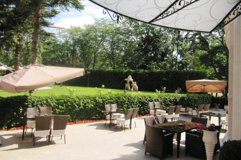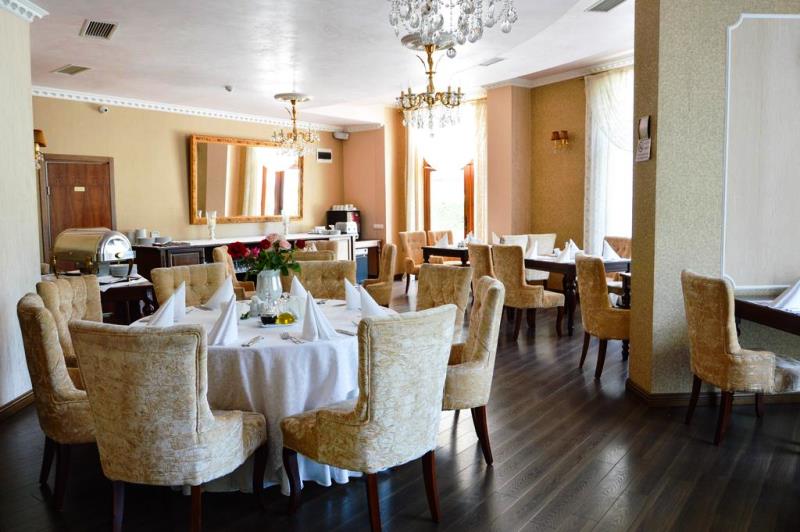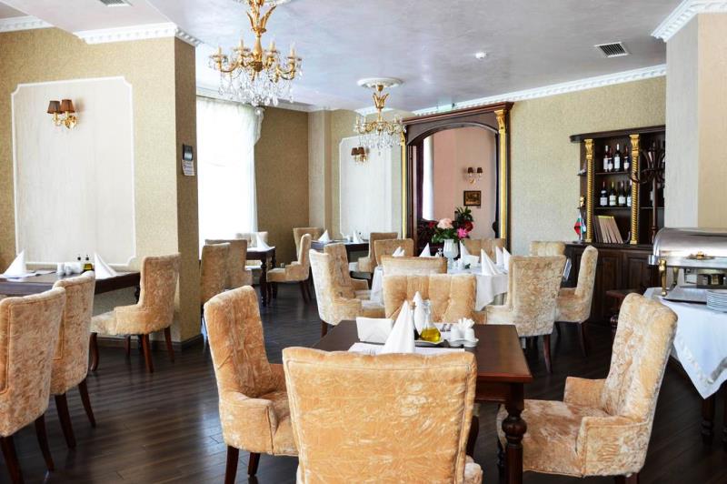Всяка сутрин се сервира пълна закуска на шведска маса. В елегантния ресторант Кристел, чийто интериор включва полилеи и огледала, можете да се насладите на български и международни ястия, както и на селекция от 63 вина.