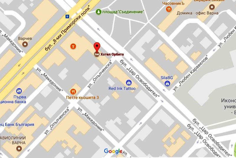 С централното си местоположение на бул. Цар Освободител 25, хотел Орбита е само на 4 минути пеша от всички основни административни, образователни, исторически и културни забележителности във Варна. Освен това хотелът е едва на няколко крачки от Морската градина и живописния плаж, както и от най-популярните ресторанти, нощни клубове и барове.