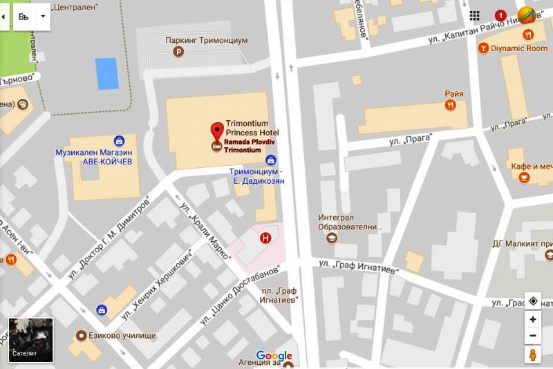 Разположен в центъра на града, ул.Капитан Райчо 2, Пловдив - център, 4000 Пловдив, хотел Рамада Пловдив Тримонциум е на 15 километра от чартърно летище Пловдив и на 500 метра от автогарата.