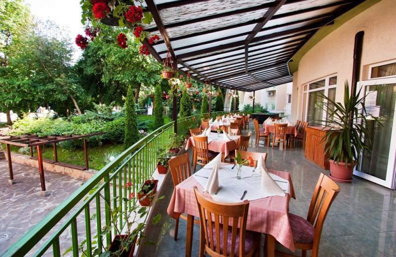 Ресторантът е обзаведен със стил, зона за пушачи, открита тераса и цветна градина. Предлага богат избор от типично български и избрани европейски ястия.