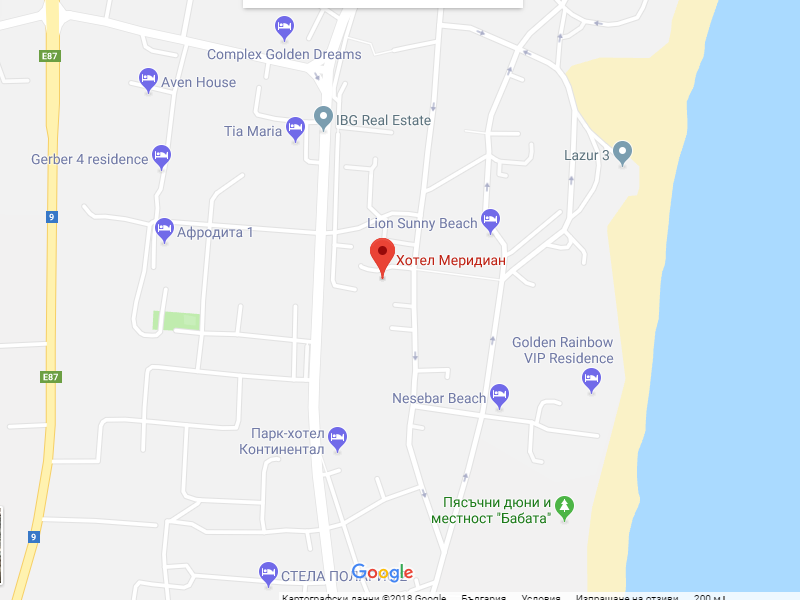 Смартлайн хотел Меридиан се намира в близост до южния център на Слънчев бряг. Предлага 268 стаи, разположени на 10 етажа, и е на около 200 м от плажа.