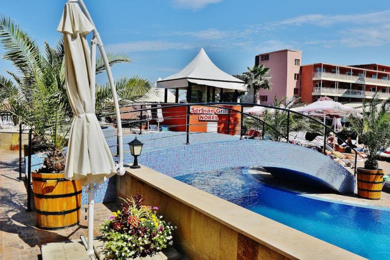 Елегантният Нобел хотел се намира на тихо място, на 25 километра от Международно летище Бургас, далеч от шума на центъра на Слънчев бряг и в близост до невероятните пясъчни дюни и плажа. Осигурен е безплатен WiFi.