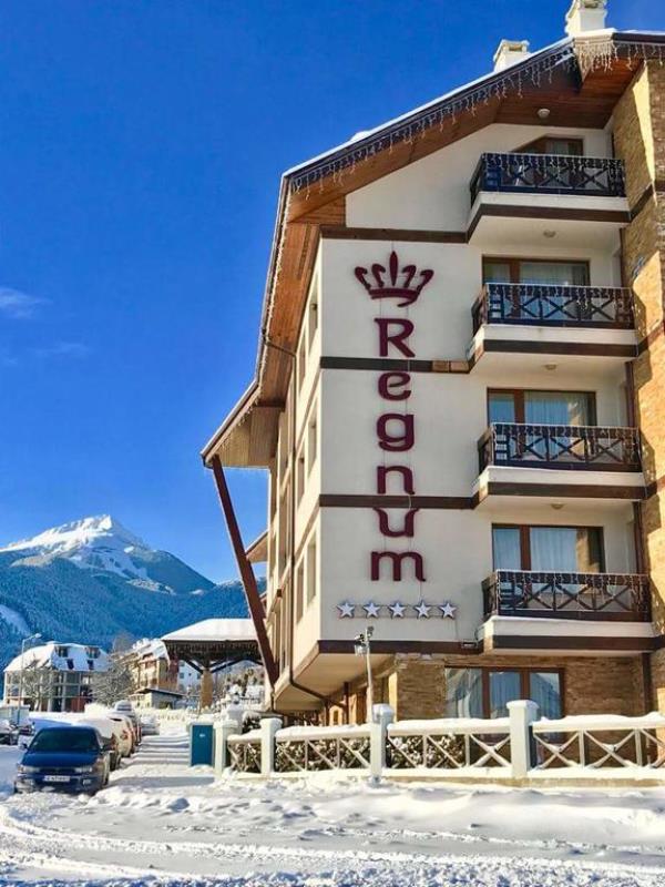 Предлагаме ви да се насладите на една незабравима ваканция в Банско - най-добрият зимен и летен планински курорт на балканите! А Регнум Банско Апарт Хотел и СПА е уникално място за вашата почивка, за вас и вашето семейство. Тук ще намерите съчетание от обширни апартаменти с невероятен изглед към Пирин планина, единствения аква парк в Банско, перфектни условия за конферентни събития, тиймбилдинги, сватби, банкети, детски рожденни дни. Ние разполагаме с най-голямата конферентна зала в Банско – 400 места театрална подредба. Луксозен СПА център, автентична турска кухня през зимния сезон, детски кът и анимация за деца ще допринесат за вашата пълноценна и запомняща почивка.